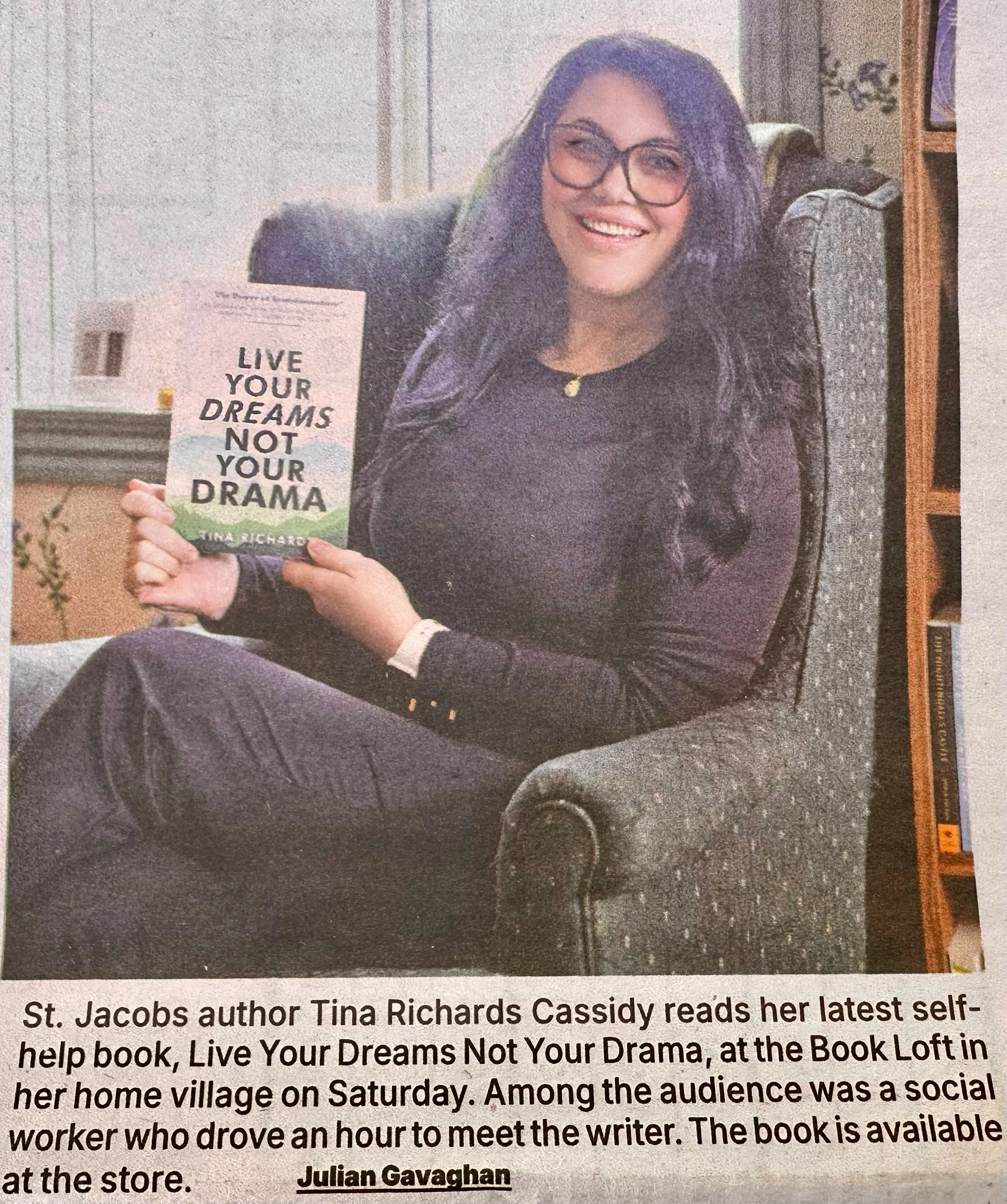 On April 12, 2025, in coordination with The Book Loft in St. Jacobs, Ontario, Tina hosted an afternoon with the author event. The gathering provided a unique opportunity for attendees to hear Tina share her journey of transformation and read a chapter from her book, Live Your Dreams, Not Your Drama.